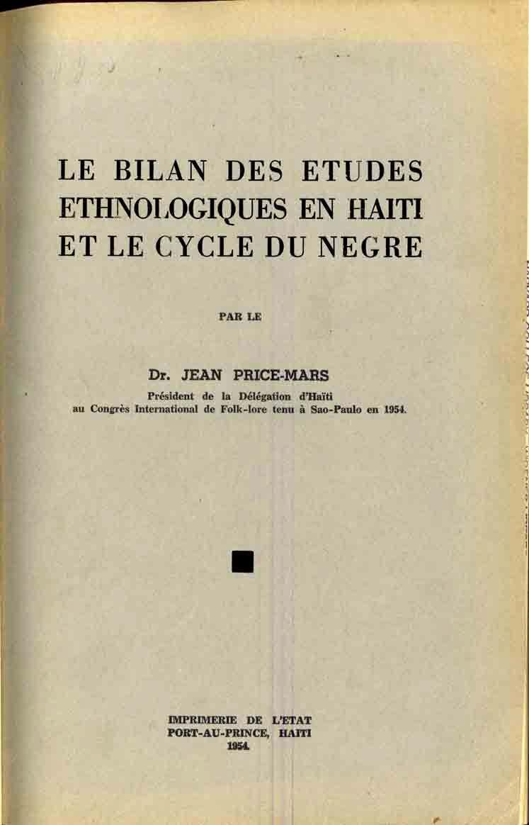 Le livre de Dr Jean Price-Mars, "Le bilan des études ethnologiques en…